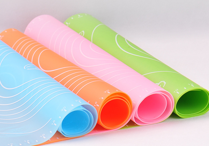 硅膠墊:材質(zhì)是玻璃纖維涂覆硅膠,更高可耐260度,可使用數(shù)年,脫模效果好,清洗非常方便,可以洗碗機清洗,價格比油布貴,產(chǎn)品厚實手感好,表面可印刷尺寸、形狀、餅干配方等方便烘焙,表面防滑,可以從揉面開始到烘焙全程使用硅膠墊,反復揉捏不會有折印,缺點是不可裁切。