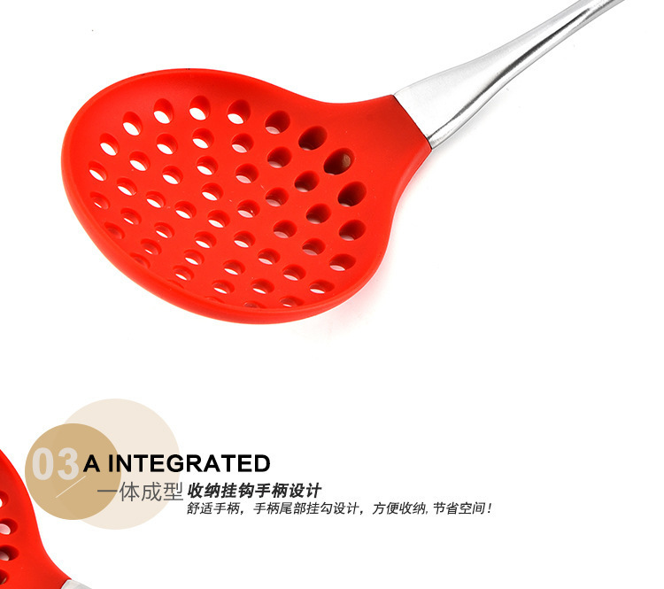 - 硅膠漏勺,不銹鋼柄硅膠漏勺,硅膠撈面勺