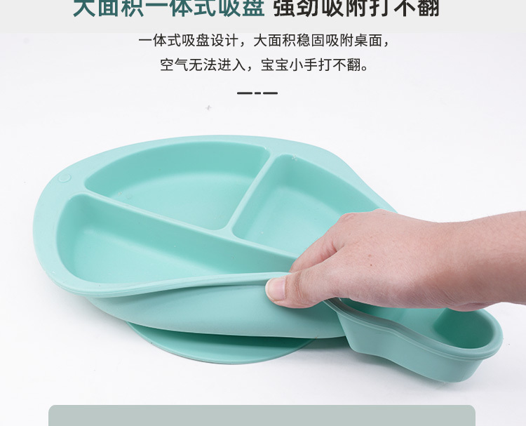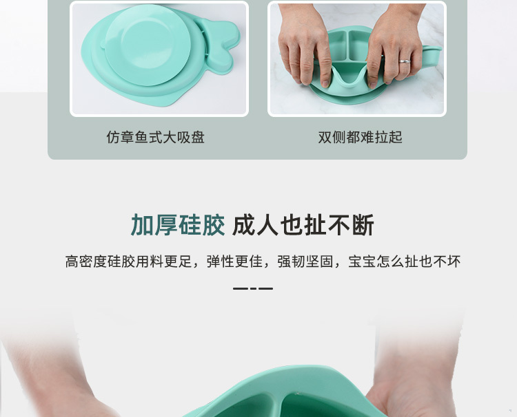 - 小魚硅膠餐盤-一體式分格吸盤防摔兒童食品級硅膠餐盤