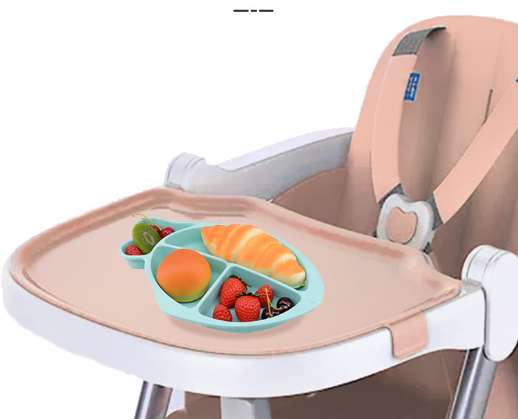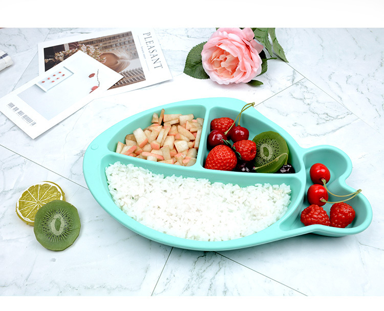 小魚硅膠餐盤-一體式分格吸盤防摔兒童食品級硅膠餐盤