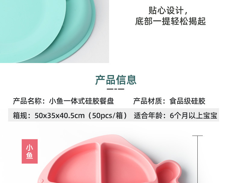 產(chǎn)品名稱:小魚硅膠餐盤 吸盤防打翻可愛卡通一體式分隔兒童食品級吃飯餐盤