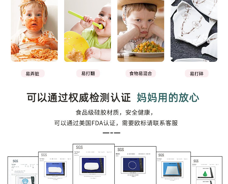 4、細(xì)膩從里到外,精選食品級硅膠原料,加厚設(shè)計,及時寶寶不小心碰撞也不會打翻,防止食物浪費(fèi)